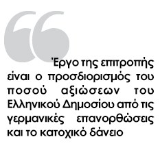προσδιορισμό τυχόν ποσού αξιώσεων του Ελληνικού Δημοσίου από τις γερμανικές